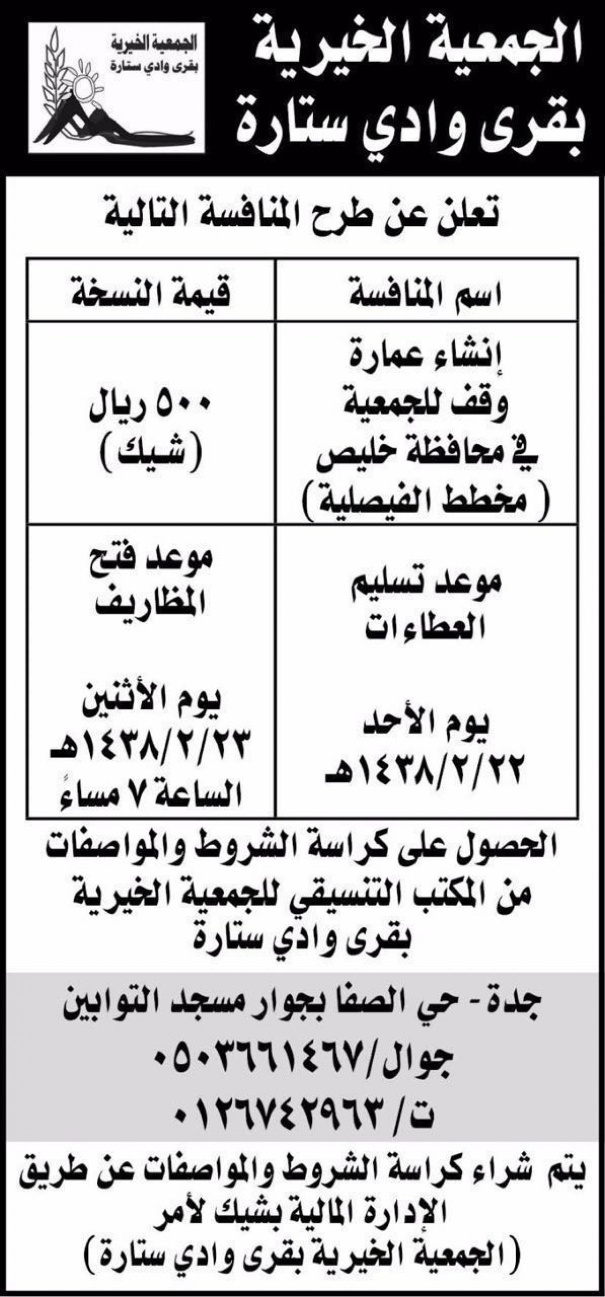 اعلان طرح منافسة بناء وقف الجمعية بمحافظة خليص