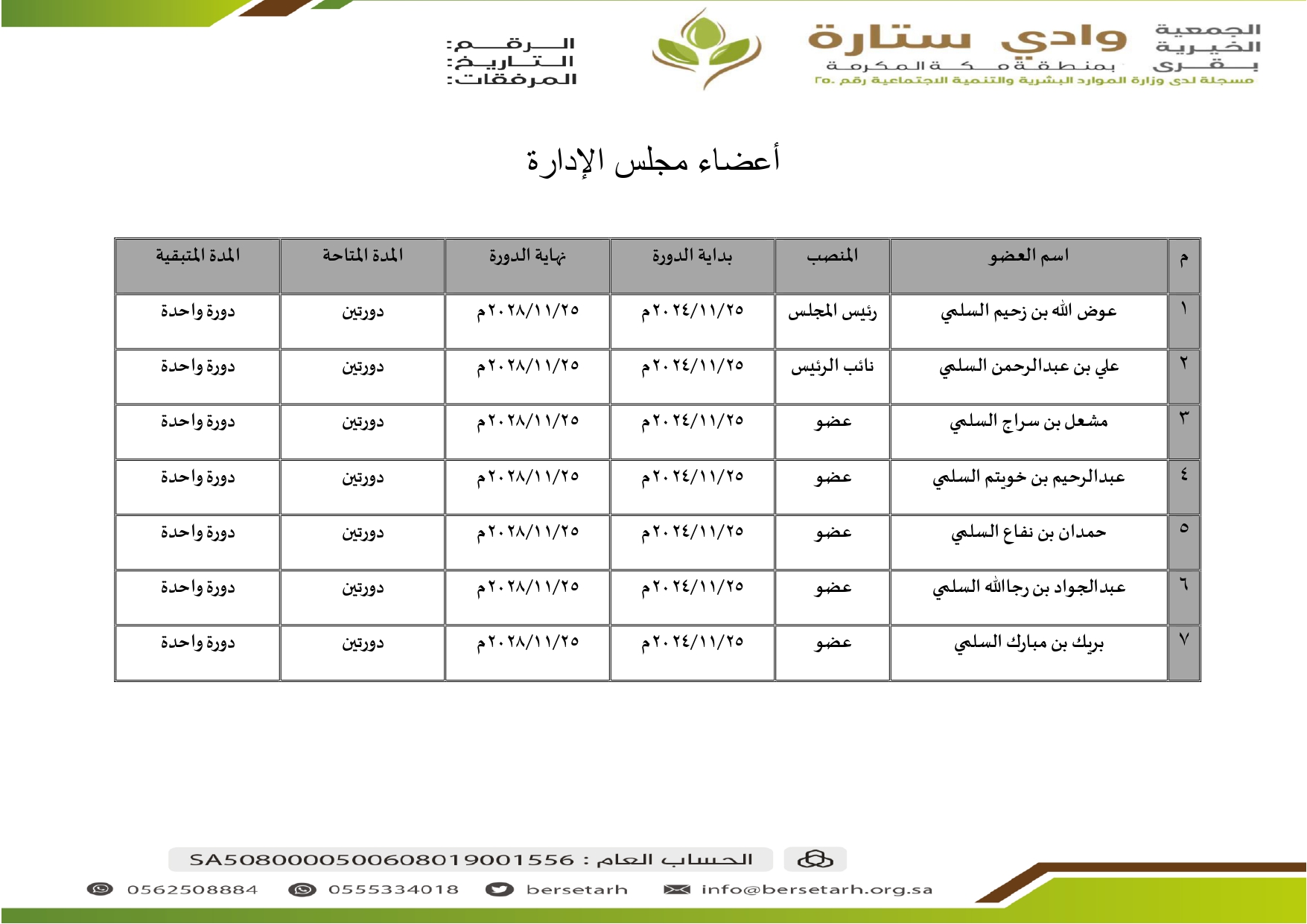 أعضاء مجلس الإدارة والمدة المتبقية لهم